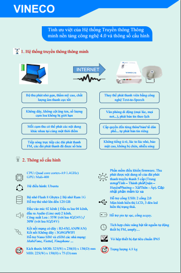Truyền thông thông minh VINECO VSB1000-V được sản xuất và phát triển bởi Công ty Cổ phần Các hệ thống Viễn thông VINECO với những tính năng ưu việc hơn các sản phẩm cùng loại khác trên thị trường, cụ thể như sau: